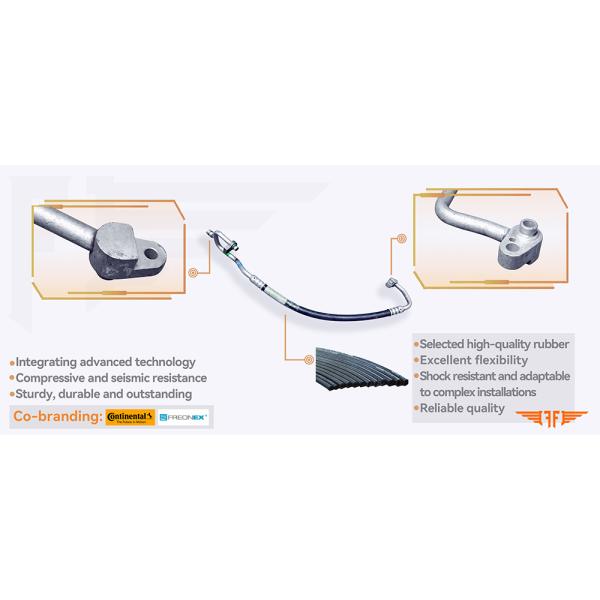 Our air conditioning ducting is primarily constructed of aluminum, combined with highly flexible hoses, allowing it to bend and move easily in tight spaces. It seamlessly integrates with other components of the vehicle's air conditioning system, making installation a breeze. We use high-quality rubber or synthetic materials that are resistant to pressure, corrosion, and aging, and incorporate reinforced braiding to ensure excellent pressure, vibration, and weather resistance, making it easily resistant to complex road conditions and extreme temperatures. We understand that safety is paramount and strictly adhere to industry standards to provide you with a long-lasting, stable, safe, and worry-free air conditioning system.